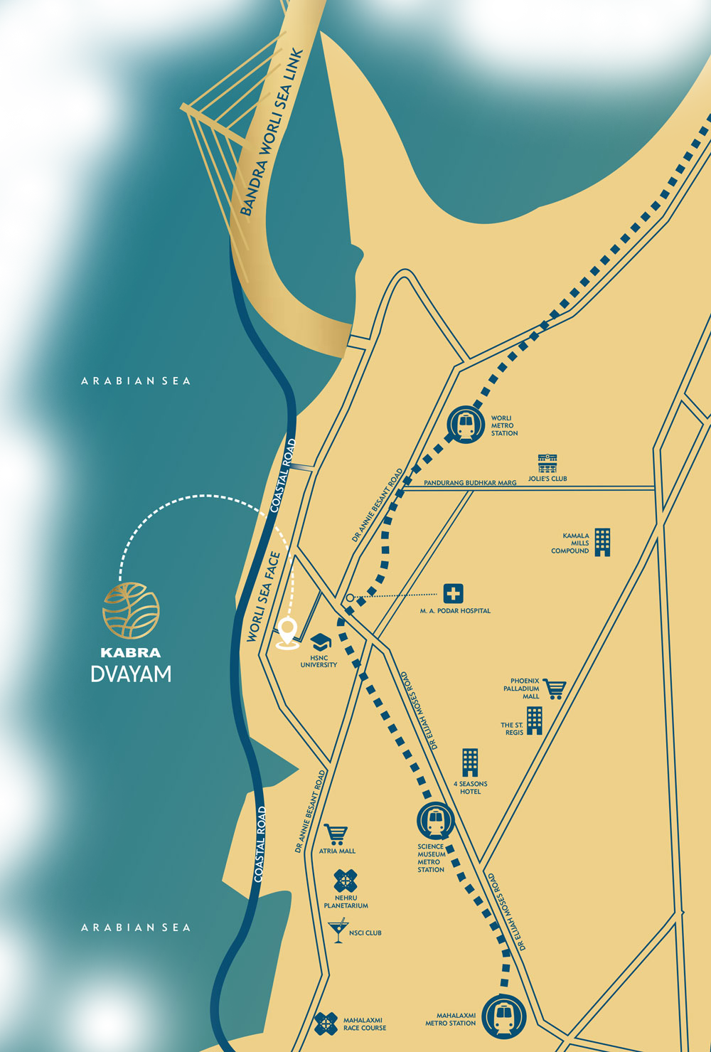 Worli, one of South Mumbai’s most coveted destinations, offers the best of both worlds. Kabra Dvayam combines nature’s finest luxuries —the Sea and the Greens—truly embodying.